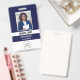 Atualize seu sistema de identificação de funcionários com nosso Crachá de funcionários personalizado e assegure-se de que seus membros da equipe sejam facilmente reconhecíveis enquanto representam sua empresa com orgulho e profissionalismo. Este crachá apresenta um design comum com um fundo azul marinho, mostrando uma combinação perfeita de elegância e modernidade. A frente do crachá é adornada com uma foto clara e de alta resolução (vertical ou retrato) do funcionário, permitindo uma identificação rápida e fácil. Abaixo da foto, o logotipo de sua empresa ganha palco central, reforçando sua identidade marca e promovendo um sentido de unidade entre os funcionários. Para personalizar ainda mais o crachá, é possível adicionar três linhas de texto personalizado. Isso permite que informações essenciais, como o nome do funcionário, o cargo e o departamento, sejam exibidas de forma destacada.