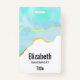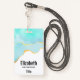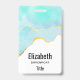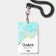 Crachá de nome personalizado com design de verão sereno. Turquesa / aqua imagem aqua verde aquosa com uma borda de ouro ondulada. Elegante e adorável.