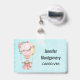 Um nome de etiqueta com um adorável design com uma ilustração de aquarela. Um balão de ar quente decorado com flores bonito, vermelhas e rosa. Um pequeno ursinho branco giro sentado na cesta. Fundo do estilo shabby azul claro.