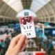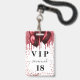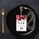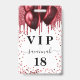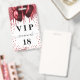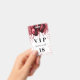 Um emblema moderno, elegante e glamoroso para uma festa de aniversário de 18 anos (ou qualquer idade). Um fundo branco com gotas de brilho falsas vermelhas e balões vermelhos. Com o texto: VIP. Personalize e adicione nome, idade, data. O nome é escrito com um estilo de letra manuscrita moderna com floreios.