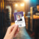 Personalize facilmente este crachá personalizado de nome e foto do funcionário com o logotipo da sua empresa e código qr ou código de barras. Disponível com diferentes cores de fundo e acessórios. Sem quantidade mínima de pedido.