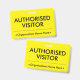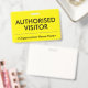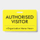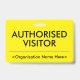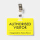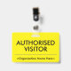 Este humilde design de crachá apresenta a mensagem "VISITANTE AUTORIZADO", e um nome de empresa personalizável ou outra mensagem personalizada. Um crachá como este pode ser usado para mostrar que alguém em um negócio ou local de trabalho é um convidado ou visitante autorizado. [~Z0000307]