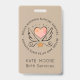 Um chorão bicho-da-nascença de bebê com asas e crachá para eventos e feiras de natalidade.