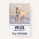 Dê um nome ao crachá com uma fotografia de um lindo cavalo branco. Atravessando um campo coberto de neve. Majestosa e bonita.