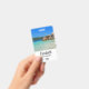 Crachá personalizado com fotografia de uma praia azul-oceânica turquesa com rochas grandes espalhadas ao longo da costa. Local tropical brilhante e ensolarado.