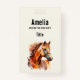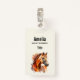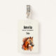 Nome crachá com uma bela ilustração. Cabeça e corpo superior de um cavalo castanho de cobre castanho. Com manchas de aquarela atrás.