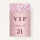 Um crachá moderno, na moda e glamouroso para uma festa de aniversário 21 (ou qualquer idade). Um fundo de gradiente cor-de-rosa pincelado com poeira brilhante fraca. Com o texto: VIP. Personalize e adicione um nome, idade, detalhes da festa no verso. O nome é escrito com um moderno estilo escrito à mão com traços. Para manter as hastes, exclua apenas o nome da amostra, deixe os espaços ou emoji na frente e depois do nome.