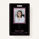 Black Blush Pink Typography Your Logo Here Photo Makeup Business Employee badge. This badge has a black background with pink accents. On the back add all your "if found" details.