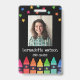Crachá Black Crayons & Stars Colorida Professora ID