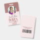 Na moda, moderno crachá de negócios Doula , o crachá apresenta um ícone de mulher grávida em cor azul-rosa dourada em um fundo cor-de-rosa pincelado. Personalize com seu nome e título na frente. Perfeito para parteira, treinador de doula/nascimento, consultor de lactação, postpartum doulas.