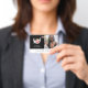 Esoteric Boho Moon Crystals Penas Flores com modelo fotográfico de fundo preto. Design boêmico com uma lua crescente, pontos de aglomerado de quartzo-rosa e cristais de cítricos, rosas rosa, verde e penas brancas. Perfeito para o seu negócio metafísico, esotérico, spa, terapeuta, curador de energia, clínico e espiritual. Texto pronto para suas informações. Substitua a foto pela sua. *correspondência de suprimentos de negócios disponíveis