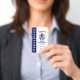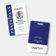Crachá de identificação de fotos com passe azul-marinho preto e moderno. O design apresenta "Press Pass", exibido ao longo do lado, para uma fácil visualização e identificação. A foto é exibida em círculo para criar um olhar moderno. Personalizar com logotipo, foto, título do trabalho, data de adesão/validade e número de ID. O verso apresenta marinho e design branco com um logotipo e endereço. A cor pode ser alterada para qualquer cor que se ajuste à sua marca, basta clicar em personalizar e clicar para personalizar ainda mais.