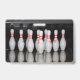 Um crachá de nome com um rack de pinos de boliche. Excelente ideal para os membros do funcionarios do beco boliche.