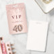 Um crachá moderno, elegante e glamoroso para uma festa de 40 anos. Um fundo metálico falso em rose gold com um efeito de gotejamento de glitter falso rose gold elegante, com aspecto de tinta pingando. O nome é escrito com uma fonte manuscrita moderna em rose gold escuro. O texto: VIP Número 40 é escrito com uma fonte estilo balão.