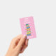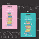 Pretty pink vertical library hall pass badge with the watercolor illustration of a bookstack and some little flowers on the front and a pattern of this same design on the back . This badge is also available in a teal color .