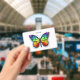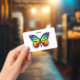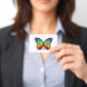 Borboleta monarca realista em todas as cores do arco-íris num fundo branco. Borboleta arco-íris.