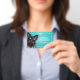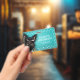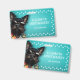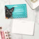Um lindo schnauzer miniatura preto em turquesa brilhante com uma borda de impressão de pata branca, este crachá de identificação de negócios de aparador de cachorro é uma maneira divertida de identificar nosso pessoal.