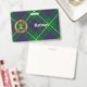 Brasão do Clã MacIntyre rodeado por uma tira e fivela sobre fundo xadrez. Texto personalizado em ambos os lados.