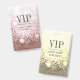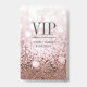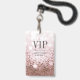 Um elegante VIP de vírgula, com todos os acessos, passa crachá de evento VIP, com brilho branco ombre, brilho suave e tipo cor-de-rosa rosa. Adicione o nome e a data do evento.