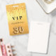 Um distintivo moderno, elegante e glamoroso para uma festa de 30 anos. Um fundo metálico dourado com efeito de brilho falso, imitando tinta pingando. O nome é escrito com um estilo de letra manuscrita moderna. Com o texto: VIP O número 30 é escrito com uma fonte estilo balão, manuscrita.