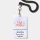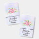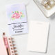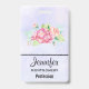 Crachá de nome com um belo e elegante buquê floral criado de aquarela. Flores cor-de-rosa cercadas por folhagem verde-clara. Púrpura de cor d'água.