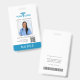 Our vertical medical personnel badges features an employee photo and name, along with multiple custom text fields for hospital or healthcare facility name, professional title abbreviation, employee's ID number, and valid through date. Add the medical center logo and photo by clicking the "Personalize" button. On the reverse side, a barcode if required or delete the placeholder image and add the return address