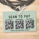 Modern sage green badge to collect payments on the go with the option to upload 3 QR codes for different contactless payment apps for customers to scan for payments. Add your business name in simple typography.
