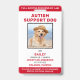 Cadalete de Identificação de Cão de Serviço - Identifique facilmente seu cão como um cão de serviço em trabalho, mantendo-o focado e reduzindo distrações enquanto trabalha com um desses crachás de identificação de cão de serviço k9. Embora não seja obrigatório, um crachá de identificação de cão de serviço dá a você e ao seu cão de serviço tranquilidade e facilidade de viagem sem problemas e perguntas ao buscar acesso público. DIREITOS AUTORAIS © 2020 Judy Burrows, Black Dog Art - Todos os Direitos Reservados. Suporte ao Autismo Crachá de Identificação Personalizado de Cão de Serviço com Foto