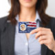 Placa de Identificação de Cão de Serviço Patriótico Bandeira Americana em design vermelho, branco e azul - Identifique facilmente seu cão como um cão de serviço em trabalho, mantendo seu cão focado e reduzindo distrações enquanto trabalha com uma dessas placas de identificação de cão de serviço k9. Embora não seja obrigatório, uma placa de identificação de Cão de Serviço lhe dá a você e seu cão de serviço tranquilidade e facilidade de viagem sem problemas e perguntas ao buscar acesso público. COPYRIGHT © 2020 Judy Burrows, Black Dog Art - Todos os Direitos Reservados. Placa de Identificação com Foto da Bandeira Americana de Cão de Serviço Patriótico