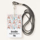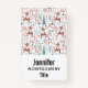Um nome de etiqueta com um adorável padrão de Natal. Veado de inverno bonito com galhadas rondando uma floresta de árvores e gramíneas.