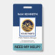 Um design de caixa de coluna azul e branca. No topo está seu nome prestigiado com uma opção de modelo de foto para colocar sua foto. As dimensões da sua foto são 1.000 x 1.200 pix. Abaixo da foto, está o título do seu trabalho, os detalhes de contato e uma opção de legenda de slogan perto da base. Você pode alterar as observações da legenda "Precisa de minha ajuda?" para atender às suas necessidades de serviço. No verso, em um cobrir branco, no topo está um logotipo global que você pode usar. Seguem-se as observações da legenda "Se perdido, volte a", os dados de contato e uma opção de slogan para divulgar seus serviços. Um design de crachá para todos.