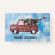 caminhão de vintage vermelho com árvore de natal em um fundo azul com floco de neve Adicione sua própria mensagem 100% personalizável. Clique no botão PERSONALIZAR para adicionar, mover, excluir, redimensionar ou alterar qualquer uma das fontes ou gráficos.