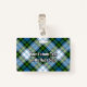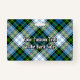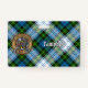 Crachá da crista Campbell rodeado por uma pulseira e fivela sobre o fundo do tartan vestido. Texto personalizado de ambos os lados.