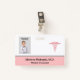 modelo de crachá de de foto do Oncologista Médico com modelo de foto, você pode substituir o símbolo funcionarios e caduceus que pode usar em nossas etiquetas para substituir o logotipo da empresa. Projetado para o funcionarios hospitalar de tratamento de canceres ou funcionarios de instalações de radiação em um design de orçamento favorável ou em uma instalação de Oncologia.