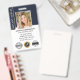 Crie uma aparência profissional com este crachá de ID público notário. Um design de na moda com caneta de pena e símbolo em forma de selo. Este modelo é personalizado com sua foto de ID, seu nome, informações e um código QR. Incluir dois símbolos de acreditação (ou três substituindo o símbolo notarial). Perfeito para um Notário Público, Agente de Assinatura de Empréstimo, Agente de Entrega de Confiança Notária Certificada, CNTDA, Notário Móvel, Apostille ou outra profissão jurídica. Cores impressas: azul escuro da meia-noite (azul-preto), elementos de cor branca e dourada. Compre a coleção on-line para obter ideias e suprimentos de produtos mais populares, projetados para notários!