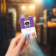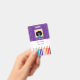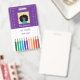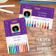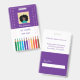 Um crachá de identificação roxo e branco com alguns lápis coloridos na parte inferior. Este cartão de identificação é perfeito para professores de arte ou educadores do ensino fundamental. Use o modelo para substituir o nome, nível de escolaridade ou disciplina ministrada, o ano letivo para o qual o cartão é válido, o nome e endereço da escola. Substitua também o ícone com a foto de 2 "x2" do professor.
