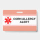 Crachá Cartão de Alerta de Emergência de Alergia a Milho
