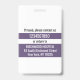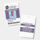 Crachá médico vertical personalizável simples e moderno com logotipo, código de barras, foto, nome e endereço personalizados. Criado para centro médico, hospital e assistência médica. Cores principais desta modelo profissional: branca e roxa.