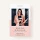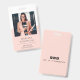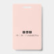 Um crachá moderno de identificação minimalista para um consultor de empresas ou outro título profissional. Na moda simples para o seu nome e título com um fundo branco e cor-de-pêssego de dois tomos. Substitua esta foto por sua própria foto profissional. Adicione o identificador de mídia social à parte traseira do crachá.