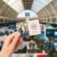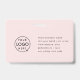 Crachá de identificação rosa corporativo simples e sofisticado, facilmente personalizável com a foto do funcionário, nome, cargo, logotipo da empresa e detalhes comerciais. O design apresenta uma tipografia minimalista e moderna, com um layout horizontal que se destaca.