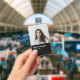 Um crachá de funcionários moderno que você pode personalizar completamente. Adicione a sua foto, nome, posição / departamento / número de ID e carregue o logotipo da sua empresa na frente. Personalize a parte traseira com texto e inclua um código de barras ou QR, se necessário. Simples e profissional para a sua equipe.
