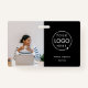 Um simples modelo de negócios preto personalizado em um estilo moderno minimalista que pode ser facilmente atualizado com o logotipo e o texto de sua empresa. Se você precisar de ajuda para personalizar este produto, entre em contato comigo usando o botão de mensagem abaixo e terei todo o prazer em ajudá-lo. A imagem mostrada é apenas para fins de ilustração para ser substituída pela sua própria foto. A imagem do marcador é de uma mulher sentada em uma mesa vestindo um jumper náutico com uma xícara de café e um laptop em sua frente.