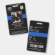 Identifique-se facilmente e ao seu oficial de polícia no departamento de polícia com estes distintivos de identificação personalizados da bandeira da linha azul fina com foto, logotipo, código de barras. Personalize com foto do oficial de polícia, nome, número do distintivo, detalhes e departamento de polícia. Personalize com o logotipo da sua delegacia, selo do estado e código de barras. Este crachá de identificação policial da linha azul fina é perfeito para todos os oficiais de polícia, aplicação da lei, sargento, chefe, capitão e tenente. COPYRIGHT © 2020 Judy Burrows, Black Dog Art - Todos os Direitos Reservados. Profissional Foto Aplicação da Lei Polícia Cartão de Identificação Crachá