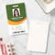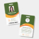 Um design de negócios moderno verde-laranja que destaca os logotipos do seu escritório e o nome do funcionário. Você pode adicionar um código de barras de varredura no verso. Você também pode alterar a cor do fundo conforme necessário. Edição simples!
