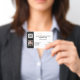 Um crachá horizontal preto simples forma uma borda à esquerda desta placa e tem um modelo para o seu logotipo, código de barras da empresa e foto do funcionário nela. A frente direita e traseira do cartão têm modelos para o nome da sua empresa; detalhes do funcionário e endereço comercial. Personalize a modelo para atender às suas necessidades e altere o plano de fundo e a cor da fonte para qualquer uma de suas opções pessoais.