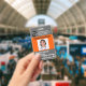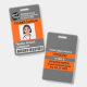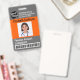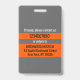 Crachá de identificação vertical personalizável simples e moderno para profissionais da área médica, com logotipo, código de barras, foto, nome e endereço personalizados. Criado para centros médicos, hospitais e instalações de saúde. As cores principais deste modelo profissional são: laranja e cinza.