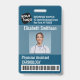 Simples e moderno crachá vertical personalizável para profissionais médicos com logotipo, código de barras, foto, nome e endereço personalizados. Criado para centro médico, hospital e unidade de saúde. Cores principais deste modelo profissional: azul turquesa e branco.