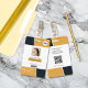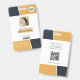 Cartão de identificação profissional com foto, logotipo, código de barras e modelos de código qr incluídos. Este estilo de design moderno tem tons de amarelo e preto com base branca. Design semelhante no verso, com endereço comercial, endereço do site e um código qr do site.