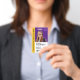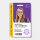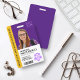 Faculdades, universidades, escolas de ensino médio e instituições de ensino superior podem adicionar sofisticação aos crachás de identificação de estudantes com este design moderno e contemporâneo, que apresenta letras elegantes em fundos roxo, dourado e branco. Personalize com nomes e sobrenomes, nº de identificação do estudante, nome do professor, nome da faculdade/universidade, anos de estudo e logotipo ou slogan acadêmico. As cores e tipos de fonte podem ser modificados conforme desejado.