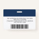 Cartões de ID de código de barras personalizados com logotipo e foto Criam um Crachá de nome de funcionário personalizado com foto personalizada, código de barras digitalizável e logotipo da empresa. Este design elegante e profissional, disponível em azul e branco marinho, é totalmente personalizável em ambos os lados. Escolha entre uma variedade de fontes sans-serif modernas para uma aparência limpa e contemporânea. O crachá está disponível com opções para um pátio, clipe de metal ou bobina retrátil. Além disso, não há requisitos mínimos de pedido